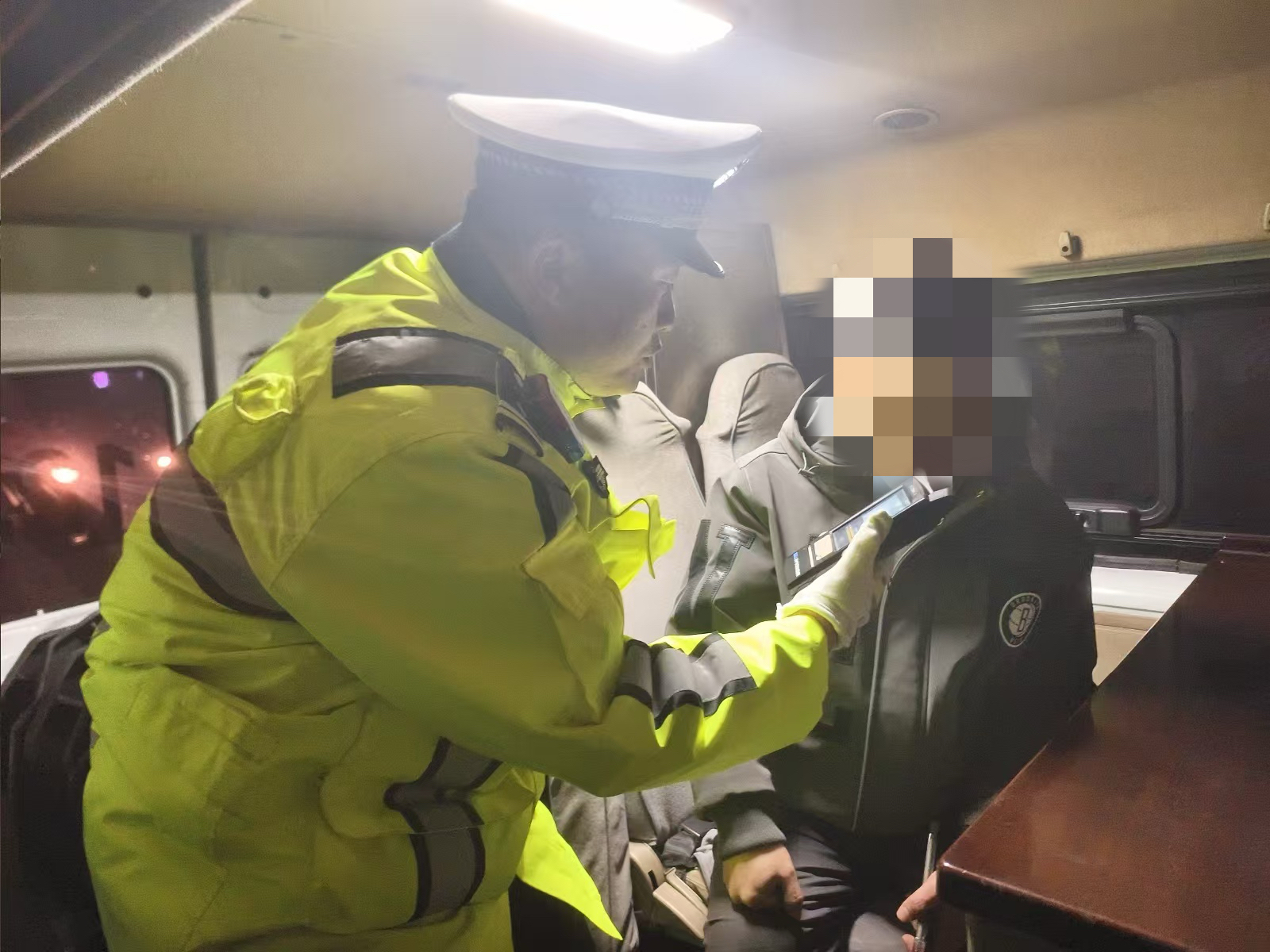 2月19日22时30分许,交管市北区大队民警在宁安路合肥路路口开展酒醉驾违法行为查处行动时,一辆白色小型越野车驶入检查点,执勤民警随即对驾驶人进行呼气式酒精测试,结果为84mg/100ml,涉嫌醉酒驾驶机动车。随后,民警将驾驶人郭某某带至医院进行血液酒精检测,目前,该案件正在进一步调查处理当中。