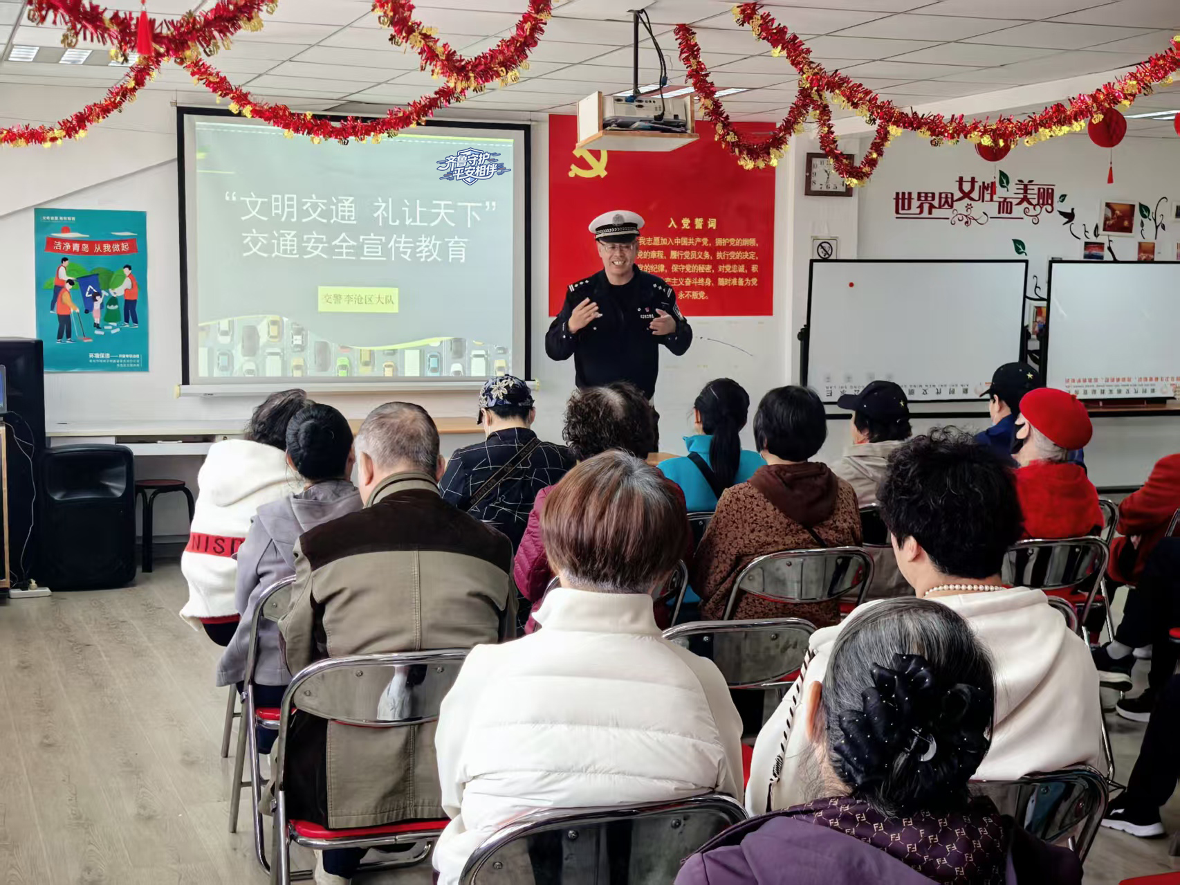 为深入推进“齐鲁守护·平安相伴”专项工作,切实守护辖区“一老一小”出行安全,筑牢道路交通安全防线,近日,李沧交管民警深入社区、幼儿园,开展针对性交通安全宣传活动,用接地气的讲解、趣味化的互动,将安全知识送到群众身边,细心守护万家平安。