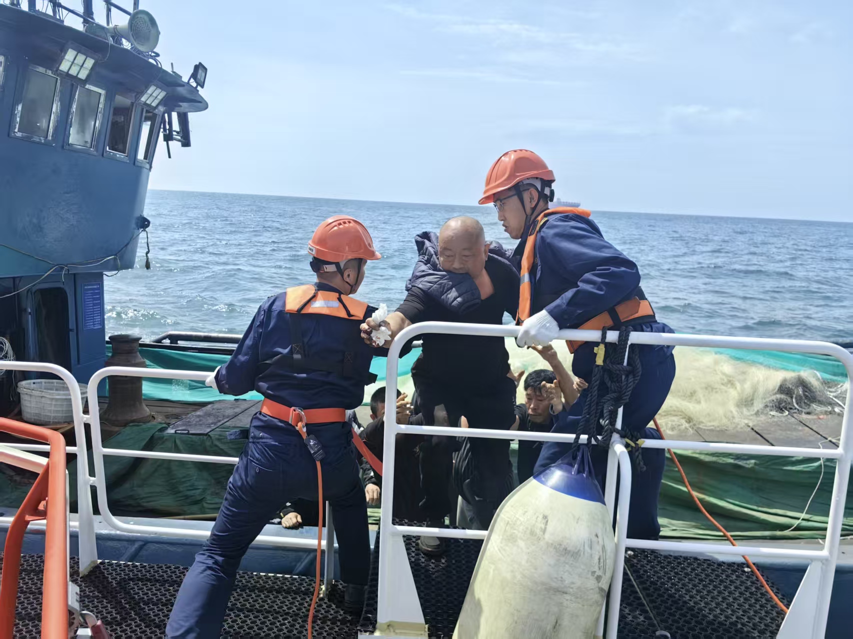 4月8日9时20分,山东港口青岛港轮驳公司“新迎宾”轮接到青岛海事局交管中心指令:朝连岛锚地附近海域,一名渔民在收网作业时,因滚轮操作不当,食指与无名指不慎被挤压受伤,需立即转运至岸上就医。