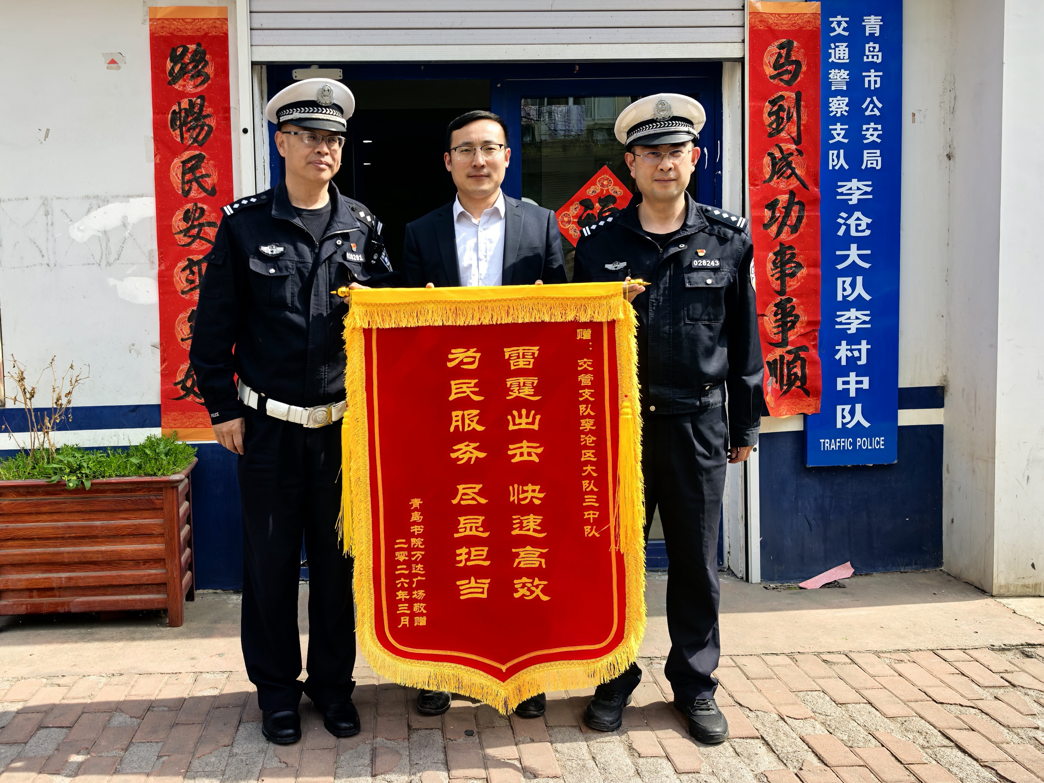 近日,李沧区书院路万达广场负责人专程来到公安交管李沧区大队三中队,将一面印有“雷霆出击 快速高效 为民服务 尽显担当”的锦旗亲手送到民辅警手中,对交管部门主动作为、务实高效破解企业周边交通难题,助力商圈发展营造良好交通环境表示衷心感谢。这份认可,源于李沧区大队三中队近期针对东兴路交通乱象开展的专项整治行动,该行动有效解决了车辆违停、道路拥堵等突出问题,切实保障了群众出行安全畅通。