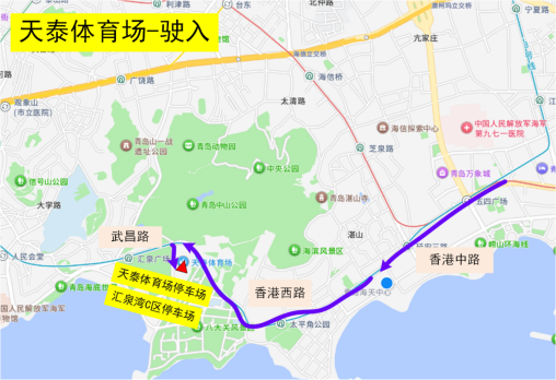 驶入:香港中路→香港西路→文登路→武昌路→停车场