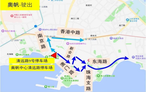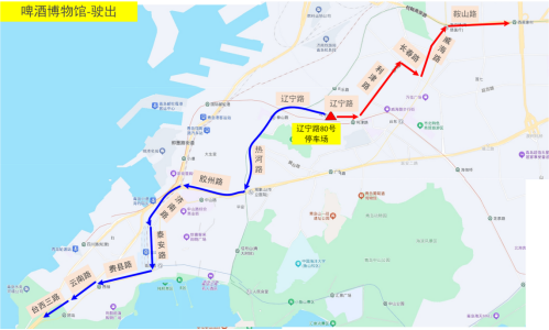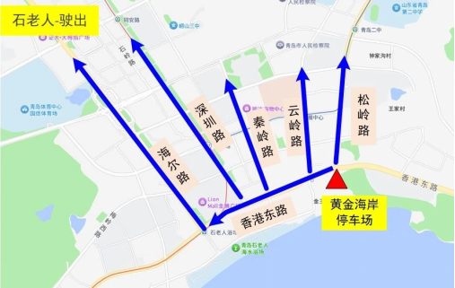 驶出:黄金海岸停车场→香港东路→海尔路/深圳路/松岭路/秦岭路/云岭路