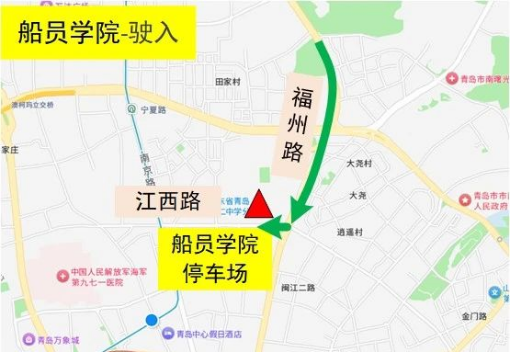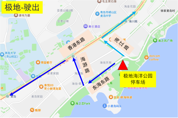 驶入1:香港东路西段→海游路→东海东路→停车场
