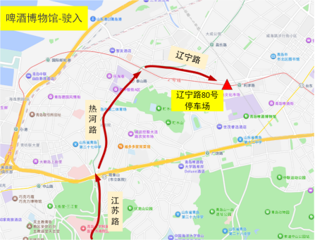 驶入:江苏路→热河路→辽宁路→辽宁路80号停车场