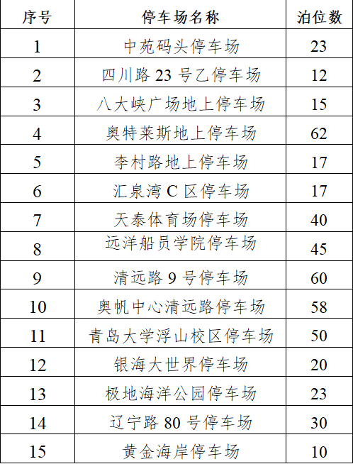 1.团岛区域(中苑码头停车场、八大峡广场地上停车场)