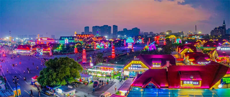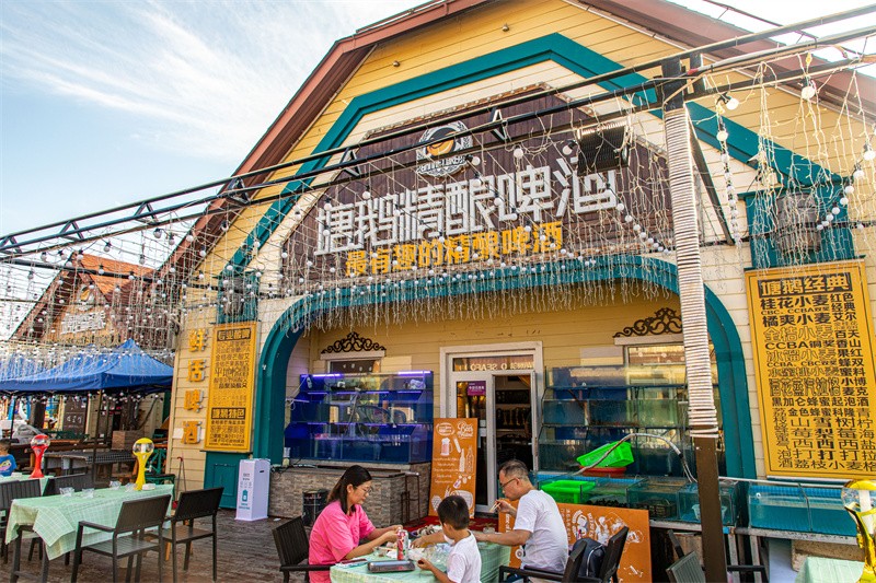 夜晚的青岛西海岸金沙滩啤酒城灯火阑珊,到处是热情洋溢的音乐。