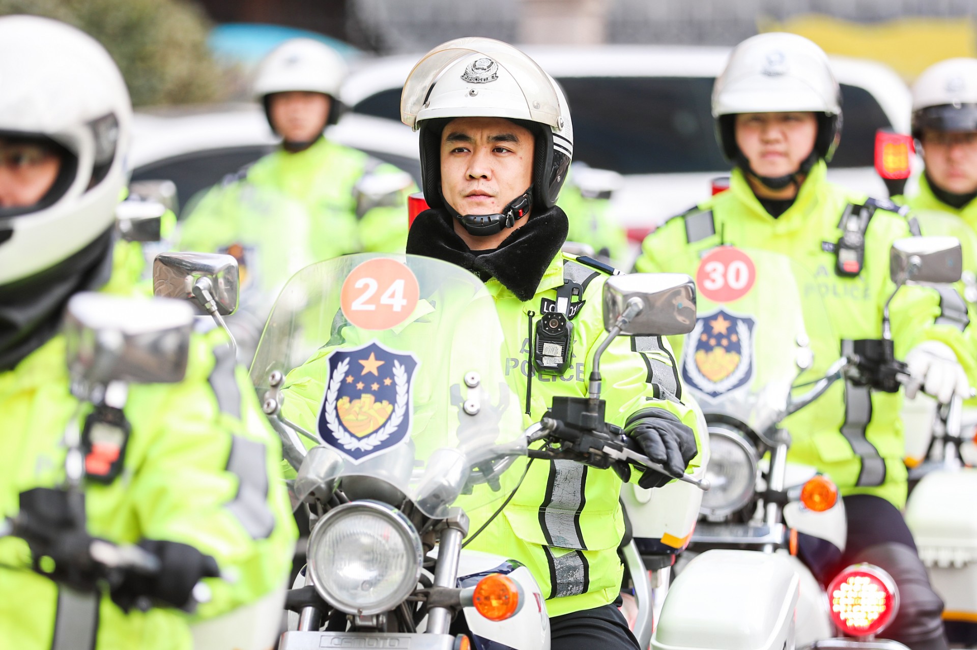 1月12日上午,青岛交警李沧大队铁骑队像往常一样出警前进行列队和每日工作任务布置,16名铁骑队员整装待发,为节前李沧辖区的交通安保工作