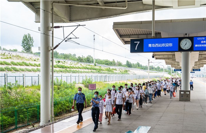 7月28日,200余名游客乘坐上海“啤酒节专列”抵达青岛西站,前往金沙滩啤酒城参加正在举行的第31届青岛国际啤酒节,开启“啤酒节狂欢”深度体验之旅。