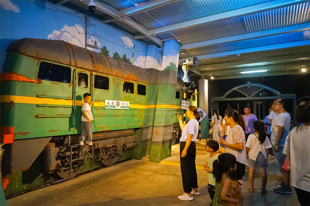 进入7月份,城阳区正式发布了城市超级IP“动车侠·未来高铁城”项目。依托这个顶流城市IP,青岛新天地“遇见城阳·时光列车”的铁路主题艺术文化长廊横空出世。光影变幻的时光隧道、不同时期的火车主题场景、手绘涂鸦、AR沉浸式的旅行时光体验。作为IP核心形象的动车侠也被从动画片中带到了现实里。这条长1.6公里自带网红属性和打卡元素的长廊,成为夜间城区最闪亮的地标。