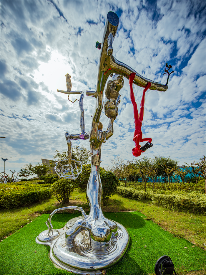本次公共雕塑展突破美术馆的空间限制,延伸至城市与公共空间中,蜿蜒于青岛西海岸新区的山海间,盘亘在东方时尚中心的整个园区内。也正是因为东方时尚中心对文化艺术的大力支持与投入,黄盒子美术馆才得以为广大青岛市民创造亲近艺术、感受艺术、分享艺术的宝贵机会。