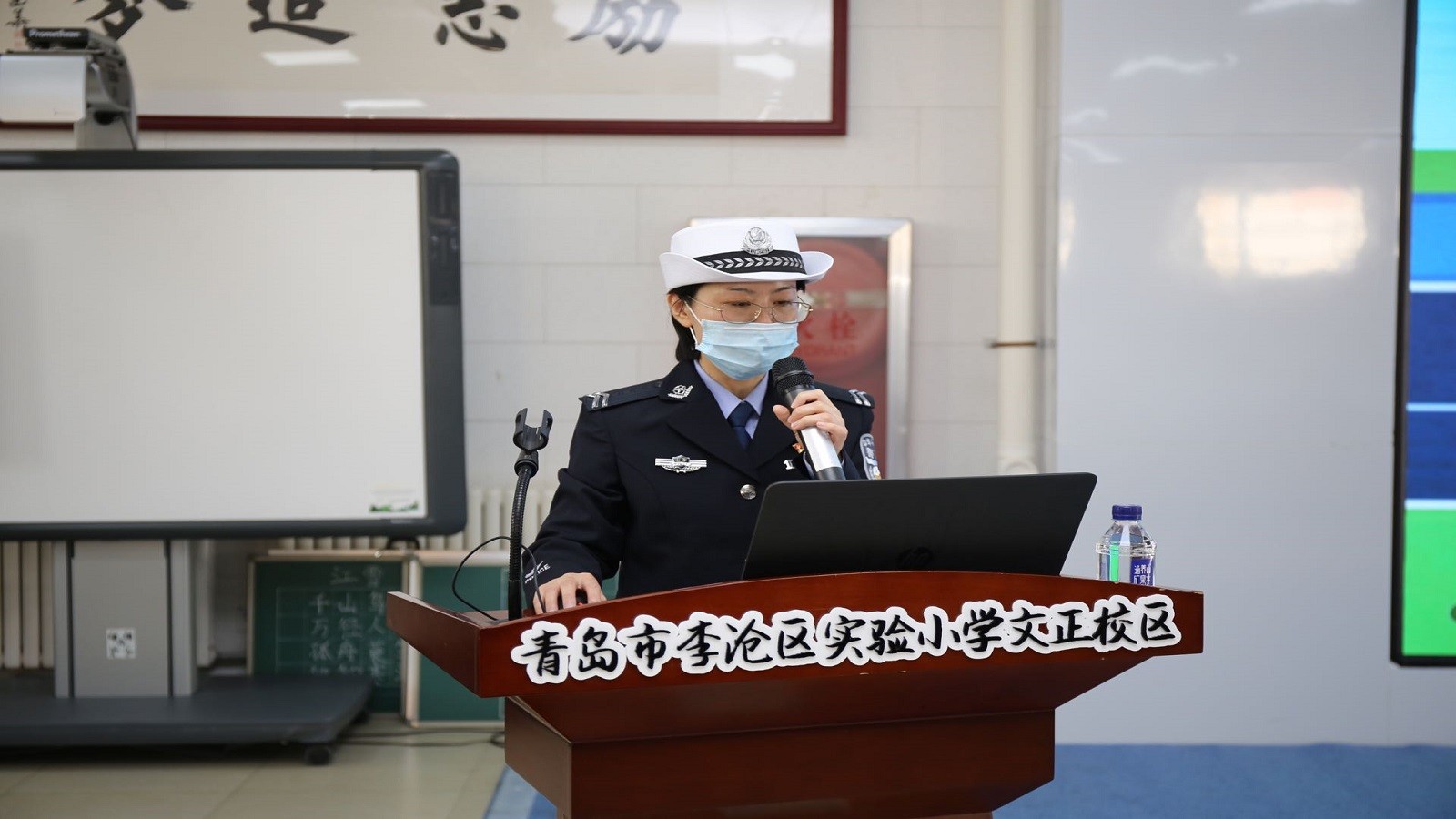 韩通科,从警16年,从事交管宣传外勤工作六年来,她和男民警一起,顶风冒雪,摸爬滚打,在一线用镜头和文字记录现场,传播交通安全知识。她是孩子们眼中熟悉的交警阿姨;是媒体记者眼中夜查现场的警队传声器;是社区居民眼中不厌其烦讲交通的交警小韩,也是多次个人三等功、优秀公务员的获得者,青岛市首届“最美警察”提名候选人。