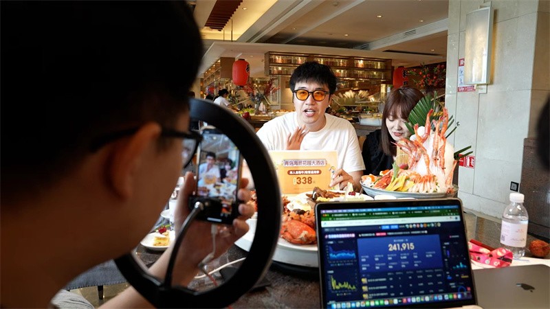 “6月8日,我们酒店当日直播带货销售额达100万。”海景花园大酒店经理修博盛说。