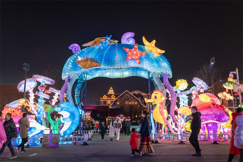 春节期间,青岛西海岸新区举办的以海洋元素为主题的新春灯会,各种海洋生物造型的彩灯结合现代光影和声效,让游客仿佛置身于奇幻的海洋世界。