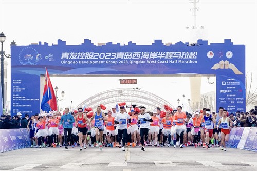 3月19日上午8:00,青发控股2023青岛西海岸半程马拉松在金沙滩啤酒城鸣枪起跑。
