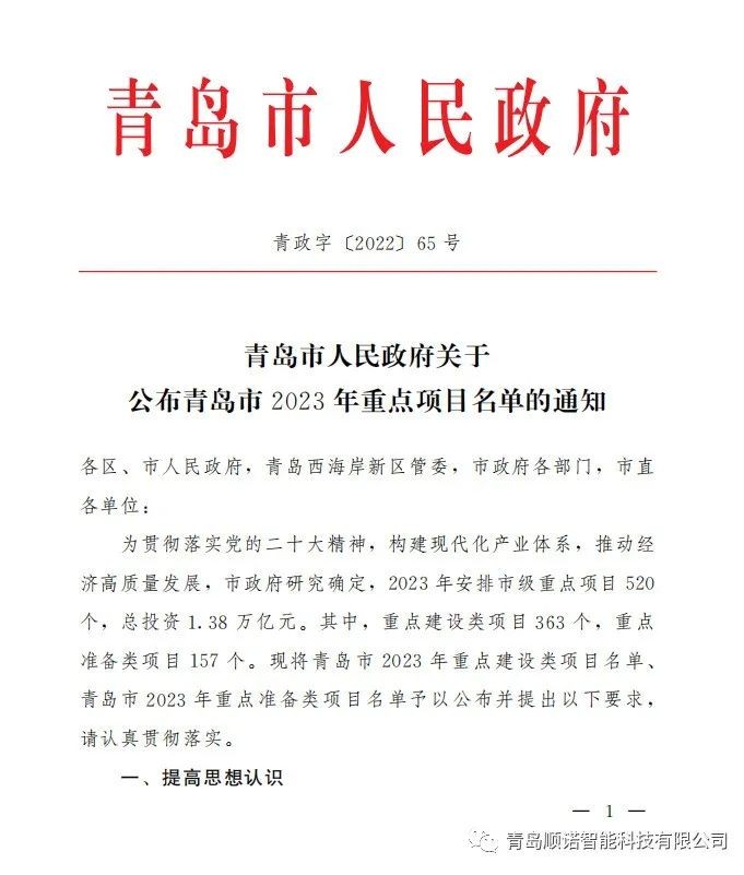喜报!顺诺机器人智造产业基地项目入选青岛市2023年重点项目