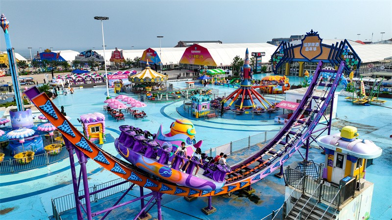 7月23日,记者从青岛西海岸金沙滩啤酒城北一门入场,直行约200米,便看到了这座“啤酒城梦幻岛”。
