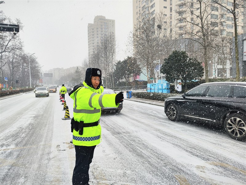 2024-02-01昨夜至今晨青岛市交警迎寒而上保安全畅通