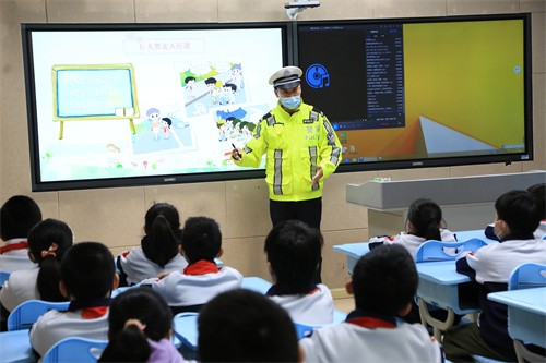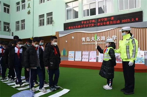 2月6日,开学首日,青岛交警市北大队在维护平安畅通上学路的基础上,走进校园,上好交通安全“第一课”。