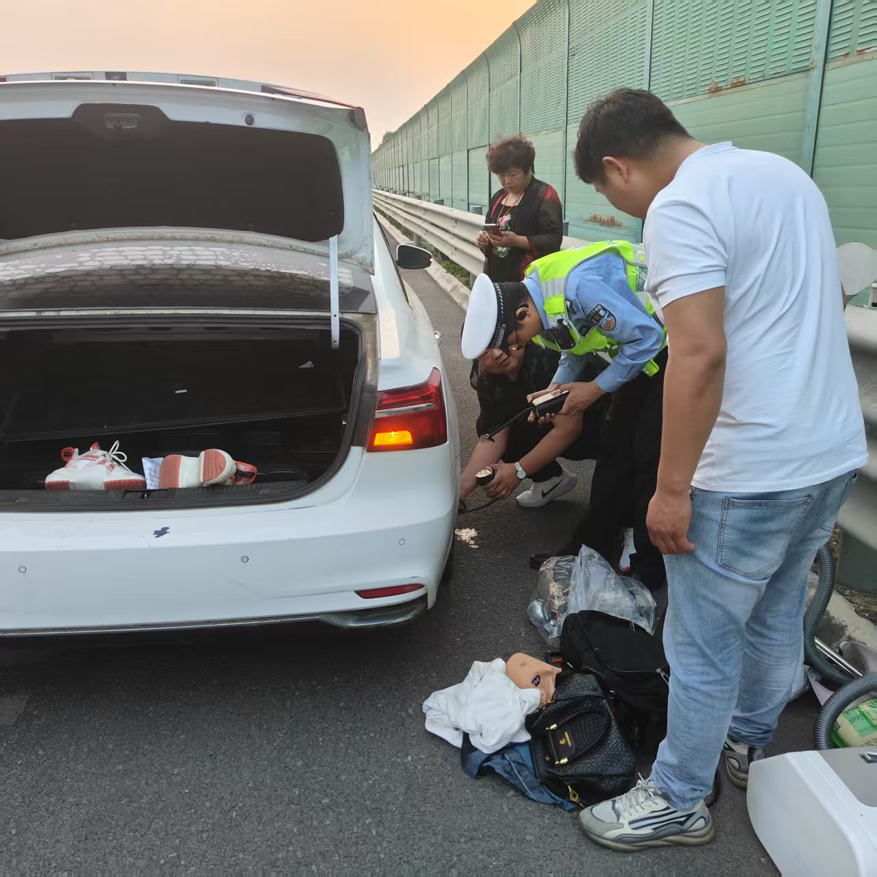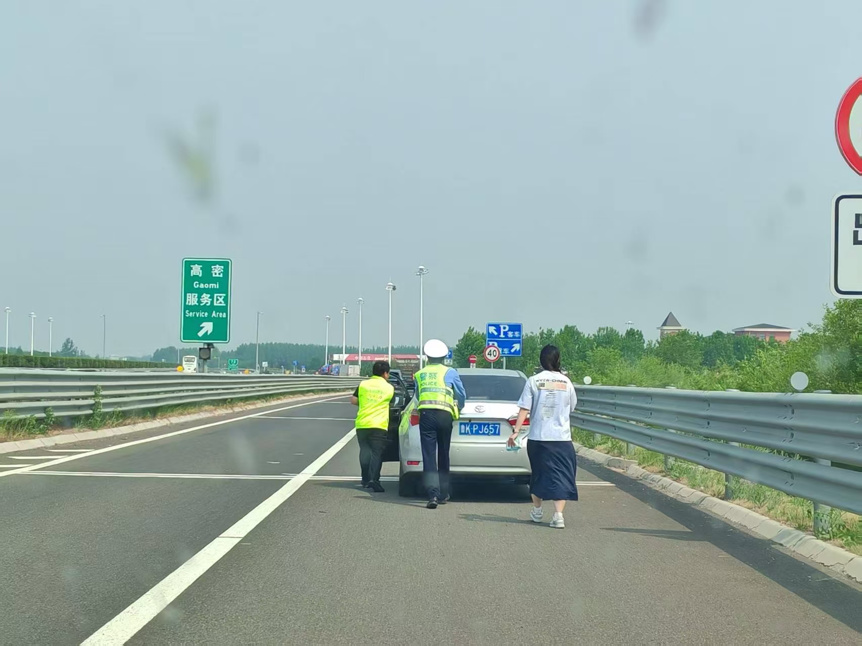 新能源汽车高速漏气,山东高速交警民警暖心救援
