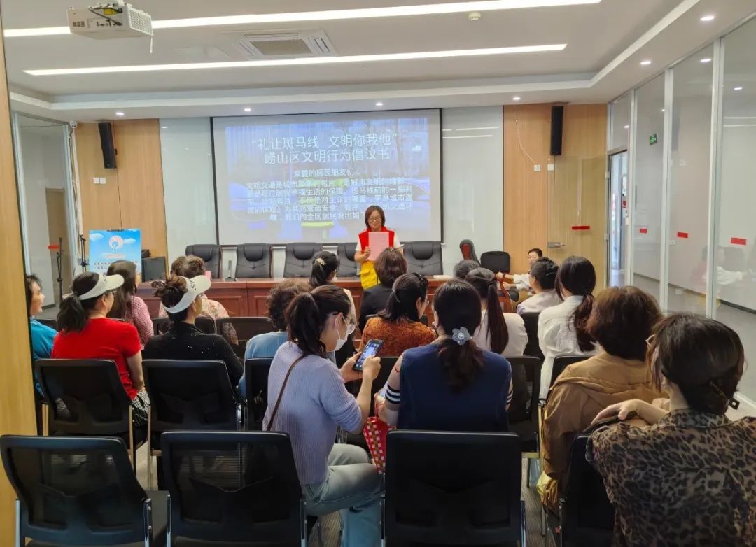 青岛市崂山区金家岭街道礼让斑马线,为社区文明“加码