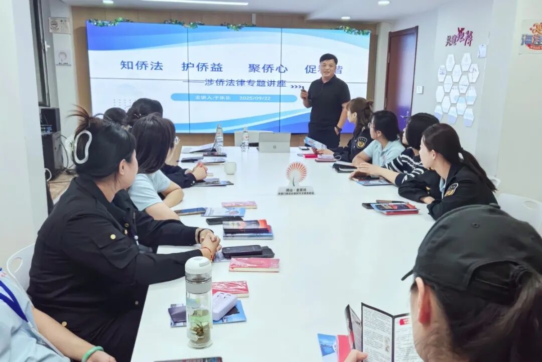 山东商报·山海新闻 房婷婷9月22日下午,青岛市崂山区金家岭街道在书香门第社区党群服务中心举行碧海侨心·法治护航——2025年侨法学习宣