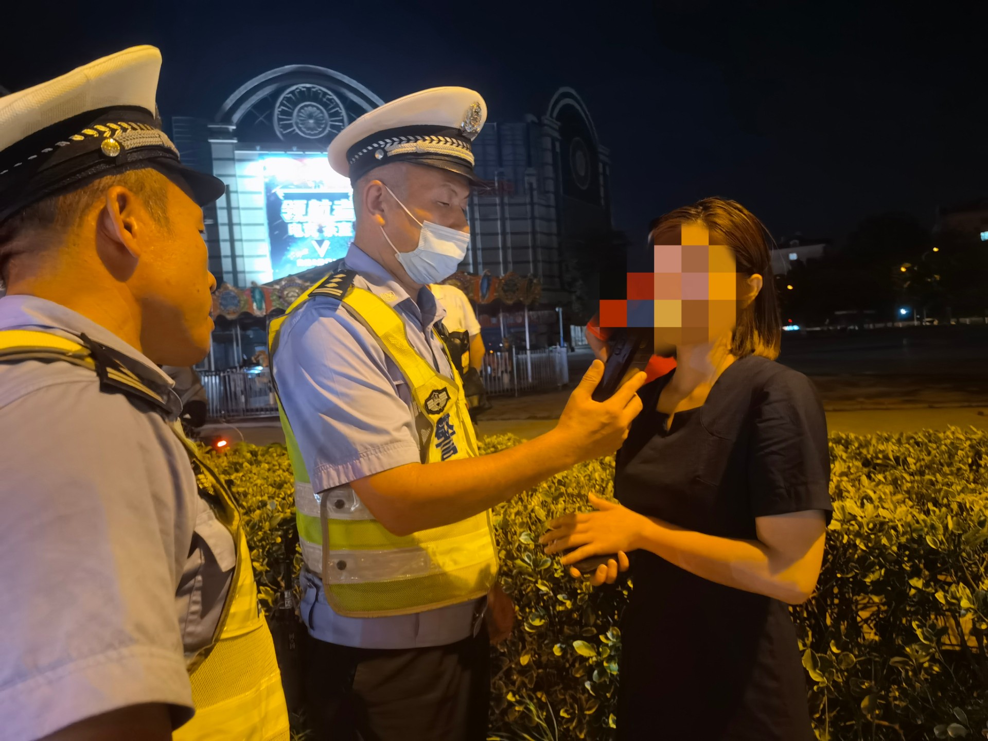 8月14日晚11点10分许,交警李沧大队天水路中队在君峰路青山路路口夜查。