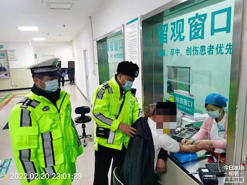 2022年2月12日,青岛交警李沧大队四流中路中队在升平路永昌路路口夜查。21点35分许,一辆鲁B577**的白色丰田小型客车沿升平路东向西行驶,