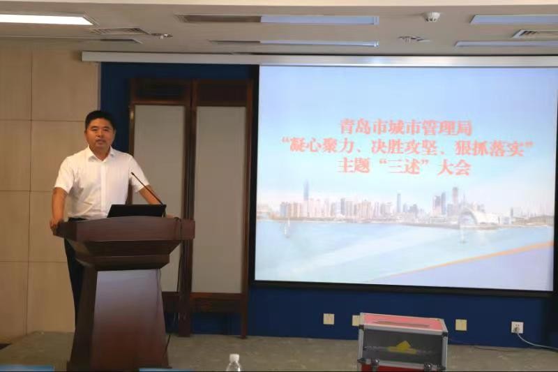 近日,青岛市城市管理局召开“凝心聚力、决胜攻坚、狠抓落实”主题“三述”大会暨2021年上半年工作述职会。
