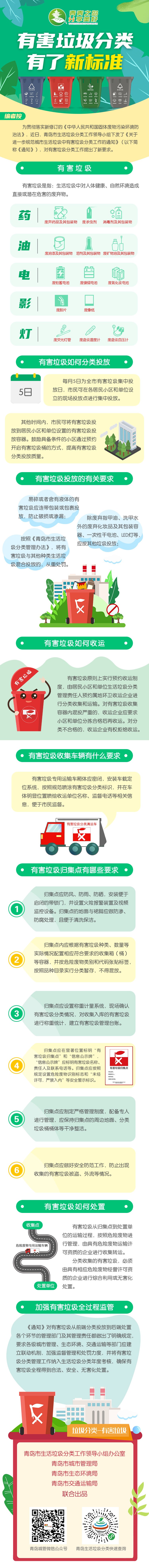下一步,青岛市将在每月5日开展“有害垃圾集中投放日进社区专题活动”,开展形式多样的宣传活动,加强市民对有害垃圾分类重要性的认识,促进居民养成分类投放的良好习惯,营造文明和谐、干净整洁的生活环境。