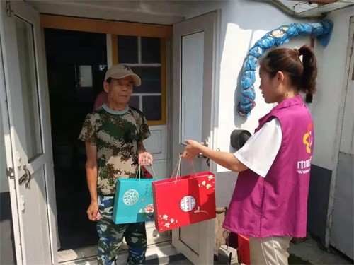 “大娘您这么多年一个人照顾瘫痪的大爷,实属不易,您一定要多注意自己的身体,有什么困难就找我们!”拿到月饼的老人听到工作人员真诚的话语,感动不已。