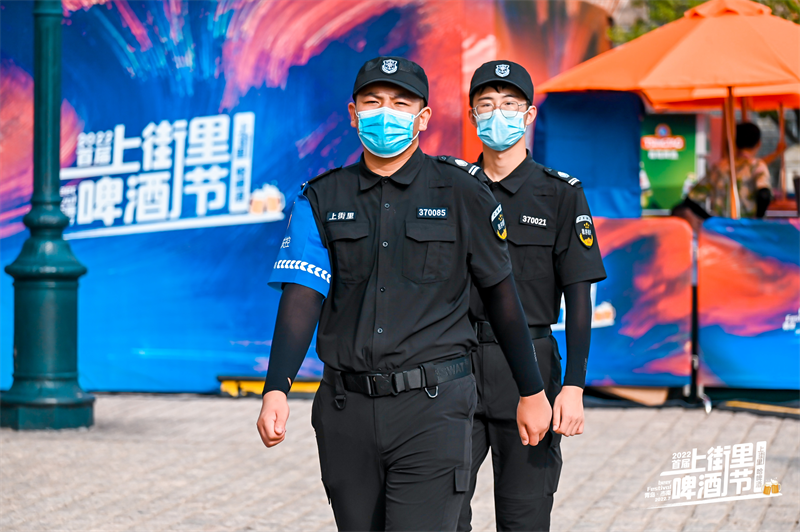 7月22日,2022青岛·市南首届上街里啤酒节隆重开幕,酒香四溢、灯火辉煌,游人如织。为保障啤酒节有序进行,有这样一群人,他们在炎炎夏日里坚守岗位,文明引导,维持秩序,安保维稳等,用心服务,让文明之花绽放在啤酒节现场。