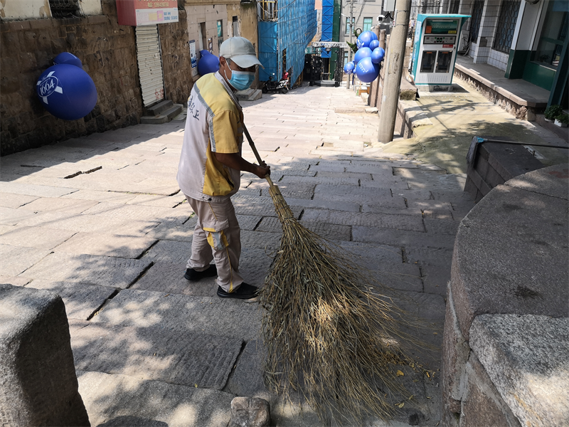 徐秋霞的同事李相华负责平江里和三江里分会场的保洁工作,每天早上5点就上岗,一直工作到晚上10点半,中间除了吃饭时间能短暂休息片刻,每天工作的时间长达十六、七个小时,但是李相华却干得很起劲儿,他说:“每当外地人夸青岛真干净的时候,我就觉得心里特别高兴,很有成就感。”