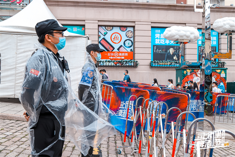 文明体现在方方面面,除了安保,有序的市容秩序也相当重要。据了解,为确保活动期间良好的市容秩序,市南区综合执法局中山路街道中队全员上岗,加大夜间执法力量,合理安排人员,对啤酒节举办区域进行不间断巡查,维护良好市容秩序,确保不出现问题。