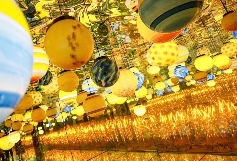 华灯初上,啤酒城更是流光溢彩、美不胜收,迎来“醉”美的夜。位于星光大道中心点位的“庆典花篮”灯组,花朵造型采用导光纱布加追光灯带,呈现出花瓣的动感轮廓,光效渐变中营造出光彩夺目的氛围。此外,由自贡彩灯组合而成的12个“海底世界”和39个“童心世界”灯组,更是吸引了众多市民游客驻足,多种卡通海洋生物和孩子们充满想象力的创意,让人犹如漫步在一个奇妙的梦幻世界里。