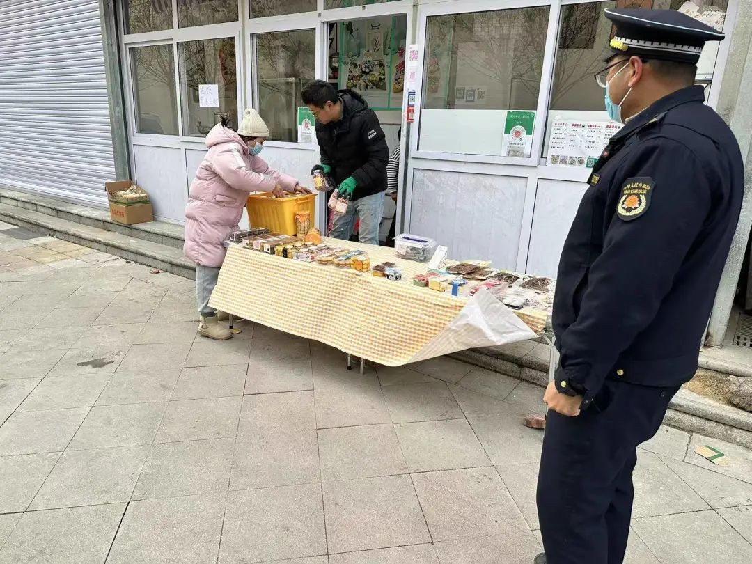 另外,该区域部分商家还存在跨店经营,路边摆摊的违规行为,执法人员现场给予当事人警告,并责令立即退路进店。