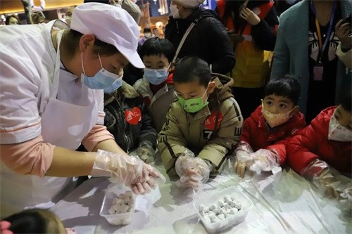 随后,大家开始动手包元宵。和粉、包馅、揉元宵……家长和孩子们忙得不亦乐乎。在制作的过程中,孩子们都跃跃欲试,志愿者在旁边积极引导,不一会儿,一个个圆滚滚的元宵就摆满了桌子。虽然大家做的元宵大小不一,但都充分体验到了“搓元宵”的乐趣。“这么多年来,还是第一次动手包元宵,尤其是与孩子一起,特别有意义。”家长刘先生表示,带着孩子参加这样的活动,不仅可以感受传统文化的魅力,也增进了亲子关系。