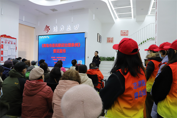 为进一步宣传、贯彻《青岛市违法建设治理条例》(以下简称《条例》),增强市民群众法治意识,2月28日上午,青岛市城市管理局联合市南区香港中路街道办事处五四广场社区,组织开展《条例》普法宣传活动。群众代表、志愿者代表及有关工作人员共计60余人参加此次活动,发放普法宣传资料2000余份。