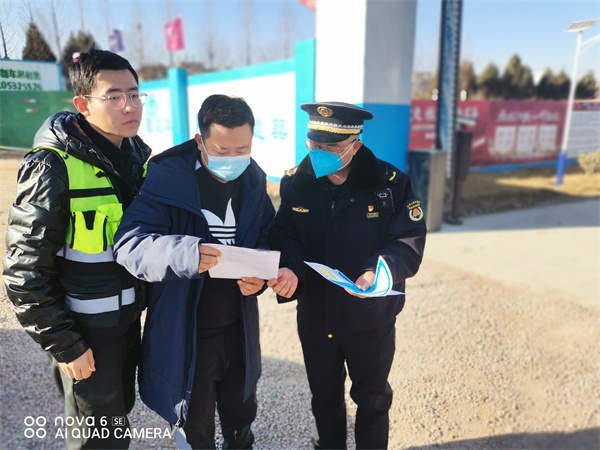 执法人员高度重视扬尘治理工作,安排专门执法队员对辖区在建工地加强实地巡查,加大检查力度。检查中,执法人员及时与工地负责人进行沟通,对施工工地的规范化管理进行业务指导,针对检查中发现的工地乱堆乱放,覆盖不严等问题,当场提出整改意见,并发放扬尘降噪等宣传材料等。后期,加强对存在问题点位的复查,确保形成发现问题、整改到位的闭环。