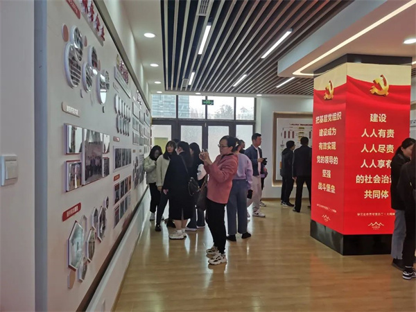 一行人来到石岭路社区新时代文明实践站,在社区党委书记梁冰的讲解下,边走边看,先后调研参观了社区志愿服务站点、新时代文明实践展厅、妇女儿童家园、各功能场馆等,深入了解社区在新时代文明实践站建设方面所做的工作。一张张照片、一块块展板展示了社区形式多样、内容丰富的新时代文明实践活动,充分体现了社区“高标准、高效率、高质量”的工作理念,得到了参观人员的一致好评。