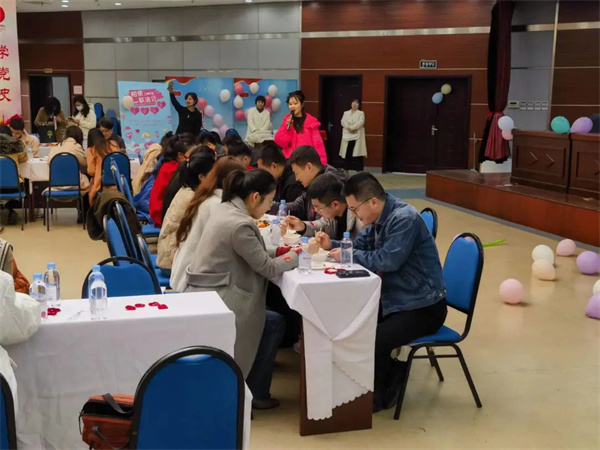 活动伊始,为了给大家创造自由交流的机会,工作人员安排到场的男女嘉宾根据性别穿插而坐。随后的“雾里看花”自我介绍、“天作之合”等趣味小游戏,让大家渐渐抛开陌生感彼此熟络起来,“眉目传情”环节则将活动推向高潮。在“窃窃私语”的加持下,心动轮转最终定位拨动心弦的那个意中人。在最后的“心语星愿”环节,现场青年男女纷纷写下自己的意中人,期待爱情花开。