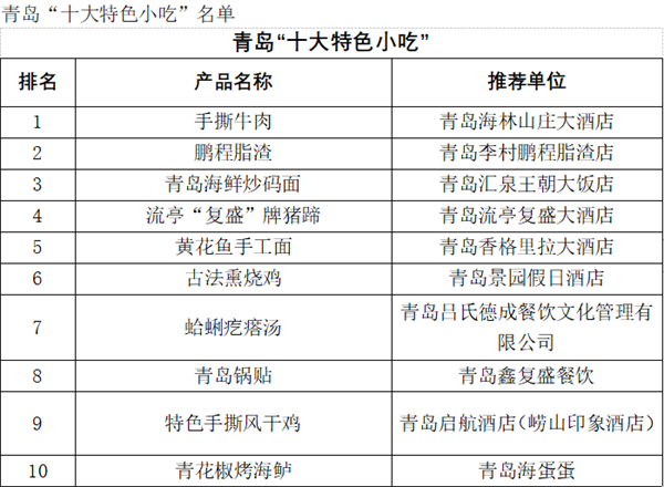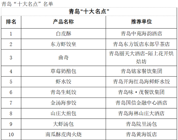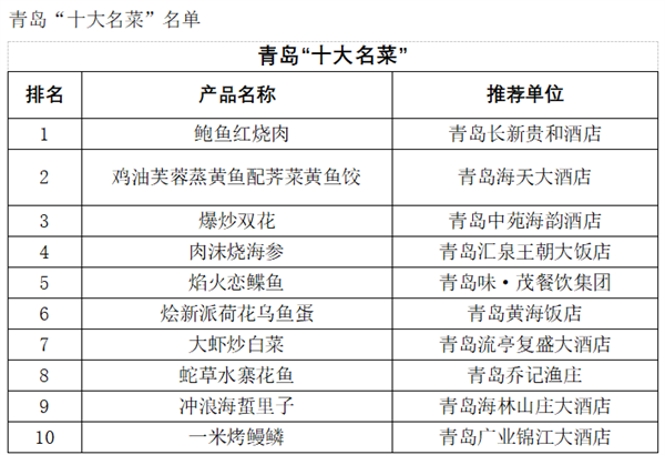 3月27日,由2023山东省旅游发展大会执委会指导,青岛市文化和旅游局、青岛市商务局、青岛市市场监督管理局主办,青岛市旅游饭店协会、青岛市餐饮行业协会、大众网青岛承办,青岛老船夫餐饮管理有限公司协办的青岛“十大名菜”“十大特色小吃”“十大名点”系列推荐活动在第二届国际海洋美食之都 青岛食材节启动仪式上进行了发布,青岛市旅游饭店协会、青岛市餐饮行业协会联合发布了进入此次推荐名单的系列菜品(点)。
