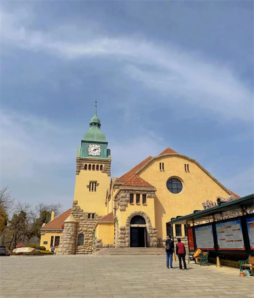 这是一座典型的德国古堡式建筑,由钟楼和礼堂两部分组成。钟楼高39.1米,登上钟楼可远眺大海;礼堂宽敞明亮,能容纳1000余人——从江苏路上仰望时,你绝对不会想到它会拥有如此大的容量。