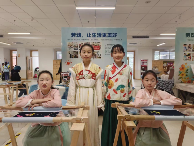 学校将“民族文化与劳动教育”完美融合,创建非遗文化项目“刺绣、面塑、蜡染、编织、胶南年画”等劳育工作坊,在刚刚举办的市南区“劳动筑梦 薪火相传”百名劳模工匠进校园暨“百分百”劳动育人行动启动仪式上,学校刺绣劳育工坊的学生代表学校参加了展示。学校孙亮星老师、徐辉老师根据展位情况提前进行设计谋划,圆满完成了布展任务。启动仪式上,与会的劳动模范、市区各级领导、兄弟学校的校长纷纷来到学校刺绣劳育工坊展位,聆听学校教师和学生的精彩介绍、跟随学生学习刺绣技艺、观摩学生制作的非遗展品,他们被学校精心地规划、学生精湛的技艺深深折服。