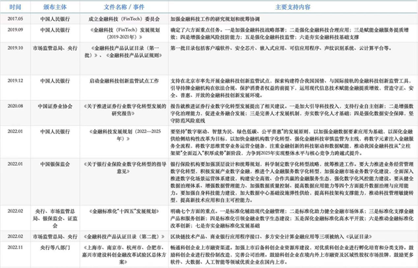 中国金融科技行业重点政策概览(资料来源:36氪山东根据公开资料整理)