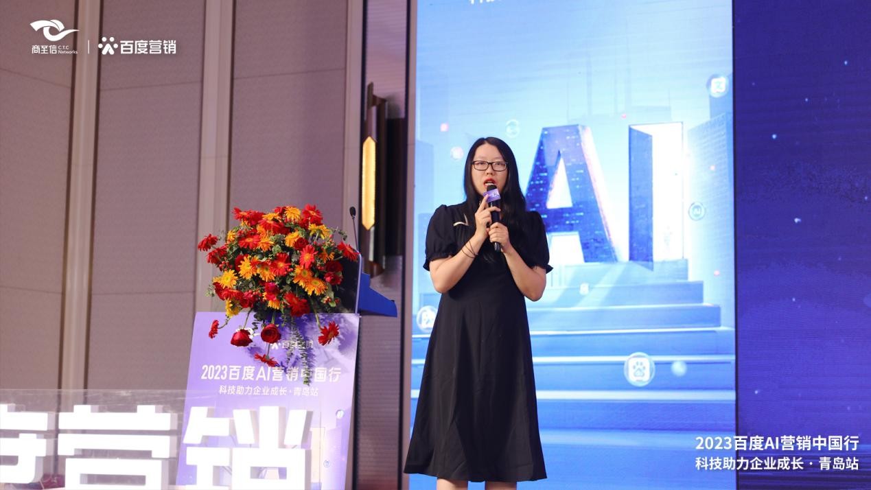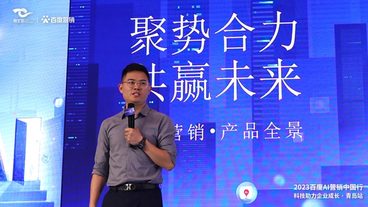 百度青岛区域渠道经理刘成发表《让AI人人可用》主题演讲,从用户终端体验变革、创新生产力的飞跃以及营销操作系统刷新三个方面,给大家详细展示了一下AI最新阶段性应用成果,完美演绎了AI高效创作优质内容到实现广告高效能转化及营销范式革新的提升和裂变。依托多年以来积累的AI技术能力,百度营销不断拓展用户场景边界,通过AI赋能创意、赋能投放,帮助品牌进行更多营销场景破圈的同时,使得品牌与用户之间的交互更加生动,有效进入用户心智建立更深层次的沟通。