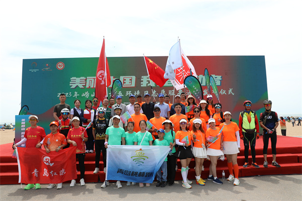 活动当天,上百位骑游队成员、跑团成员,他们手举环保旗帜,从青岛极地海洋公园一路赶到崂山区石老人海水浴场城市客厅,成为当天最美的风景。