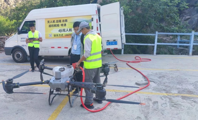 此次飞防使用药剂3%噻虫啉微胶囊悬浮剂,属安全、环保、无公害林药,可有效杀死松材线虫病媒介昆虫松褐天牛,遏制松材线虫病传播蔓延,并具有高效低毒、对人畜无害、不污染环境等特点。飞防采取无人机+地面喷雾补防技术,采用超低量喷雾作业,具有精准度高、效率性高、安全性高等优点,可明显提升防治效果。