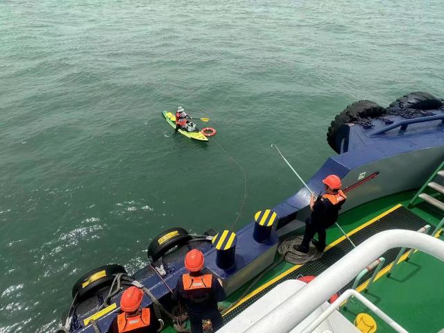 7月6日12时36分,山东港口青岛港轮驳公司“青港拖29”轮在团岛南侧水域执行维护航道通航安全任务时,接到青岛海事局交管中心和山东港口青岛港生产调度指挥中心指令,在“象咀”附近一名钓鱼爱好者乘坐的皮筏子突然失控,随时有生命危险,情况十分危急,要求“青港拖29”轮迅速前往救援。