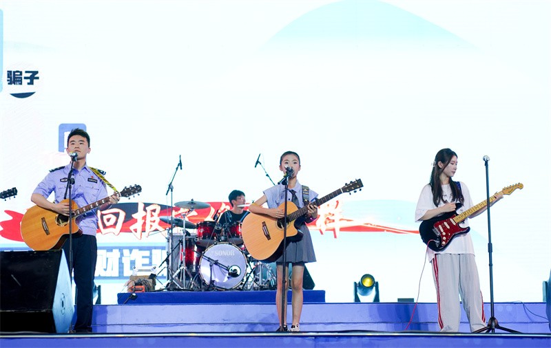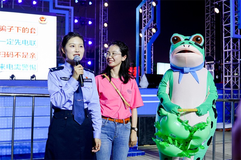 7月25日,由青岛市公安局青岛经济技术开发区分局主办的“警民同心·平安共建暨防范电信网络新型违法犯罪”主题晚会在青岛西海岸新区金沙滩啤酒城西演艺广场举行。