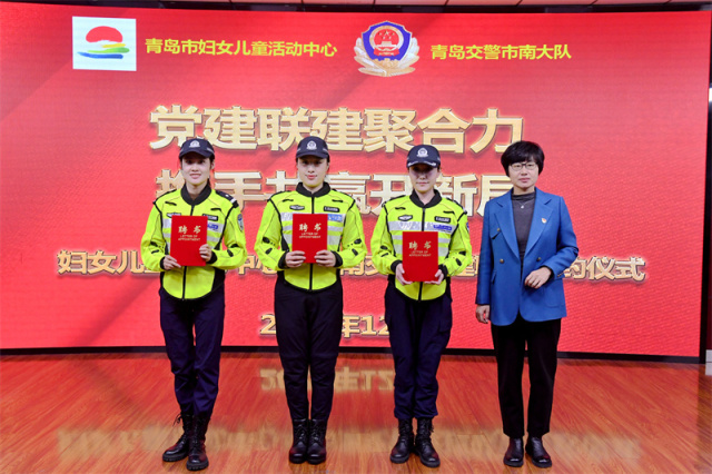 为进一步提高全社会交通文明程度,守护人民群众安全顺畅出行,推动2023年“122全国交通安全月”工作全面开展,紧紧围绕“文明交通,你我同行”主题宣传教育活动,营造安全畅通、文明和谐的道路交通环境。青岛交警市南大队与青岛市妇女儿童活动中心党本着“战略合作、优势互补”的原则举行了党建联盟签约仪式。期间,交警市南大队为文艺部部长袁理娜、声乐教师李莉、表演教师刘思思、民乐教师郭煜曦颁发了聘书,双方将以此次党建联盟为契机,在中心的指导下创造更多优秀的交通安全宣传作品。